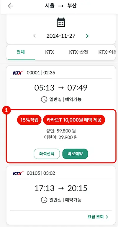 아래와 같이 트래블버킷에서 KTX 예매할 때, 혜택을 확인할 수 있습니다.